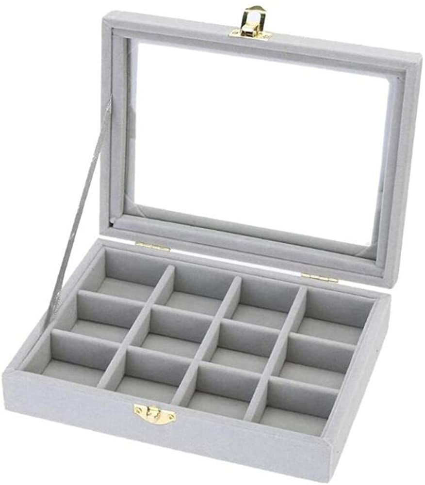 Valinks 12 Grids Velvet Glass Jewelry Display Box With Lid Jewelry Tray Holder Casket Storage Organizer Earrings Ring Box Walmart Com